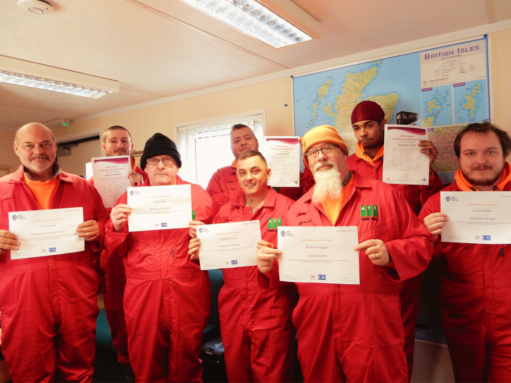 Standing proudly with their Working at Height, Forklift Conversion Lift Truck Operators, Ladder Safety, Working in Confined Spaces & Workplace First Aid certificates.